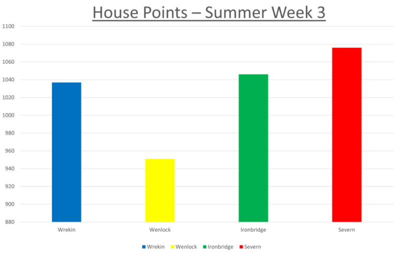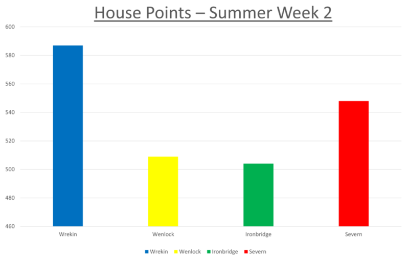 This week, Wenlock gained the most house points with 287 – the other houses were very close behind!