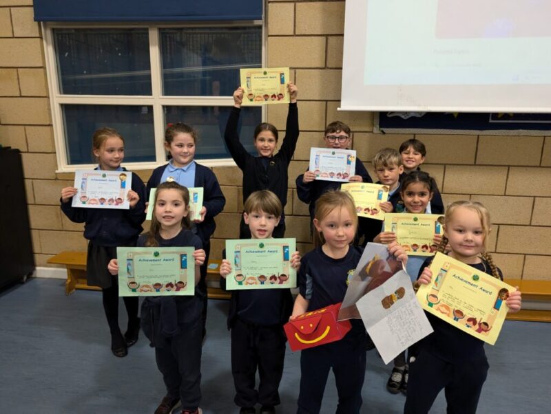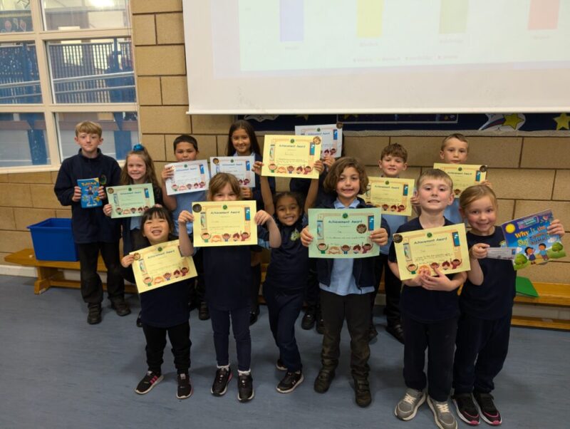 Please note that KS1 children had their assembly in their classrooms this week and so are not featured in the photograph.Â