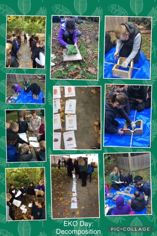6 months ago Posted on 24th Oct 2025 by Mrs Arthurs EKO Day We worked with the charity EKO to discuss decomposition and how long it takes for everyday objects to break down. We had lots of fun creating a timeline and we learned that it takes 450 years for a nappy to decompose! We also used hack saws to cut bamboo and create bug hotels.