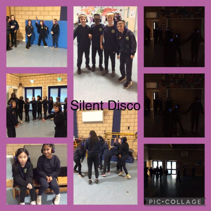 4 months ago Posted on 15th Dec 2025 by Mrs Arthurs Silent Disco This afternoon, Year 6 had their silent disco. We turned off the lights and had fun dancing with our headphones on.