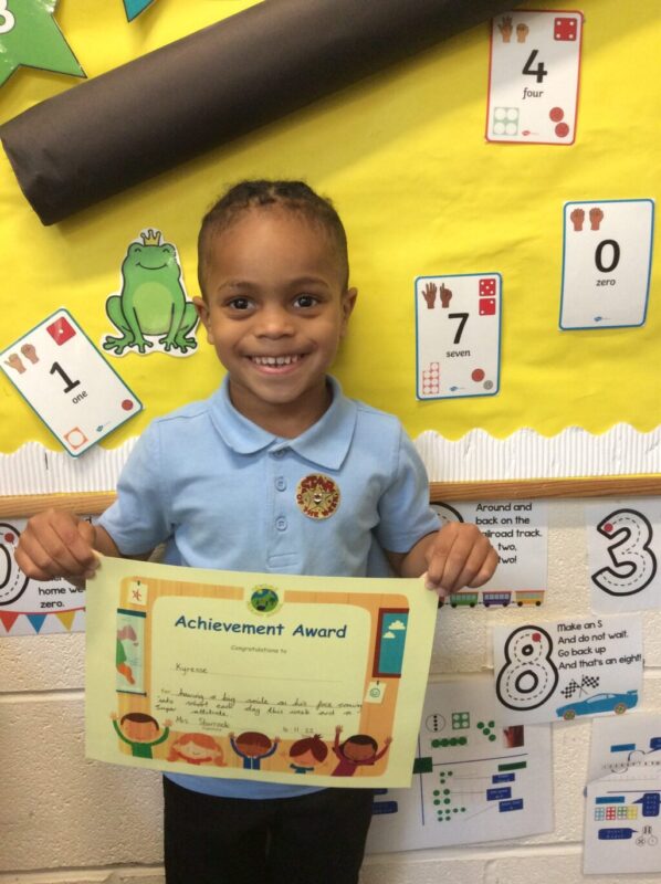 Congratulations Kyresse who is Mrs Sturrock and Mrs Evan’s ‘Star of the Week’ this week for coming to school every day with a big smile on his face and a super attitude. Well done Kyresse.