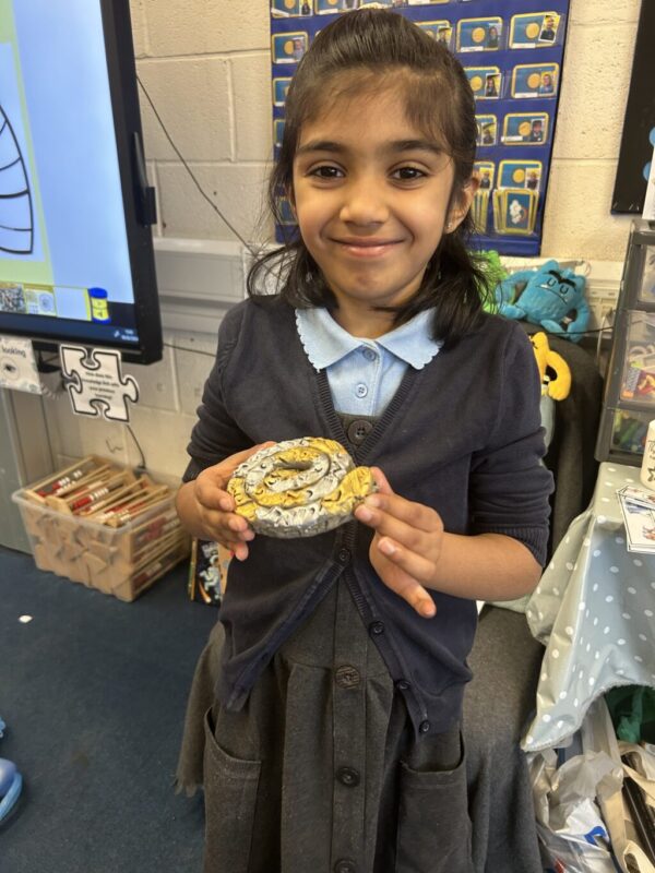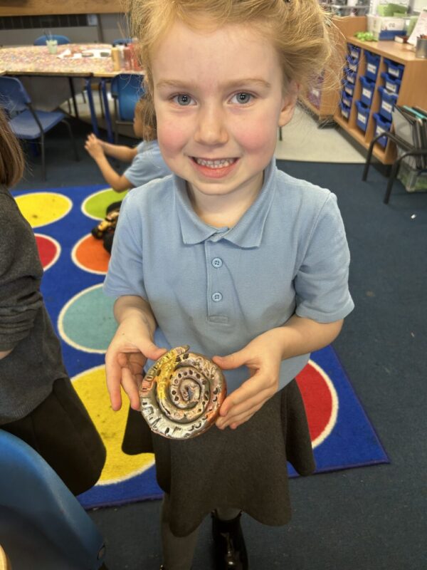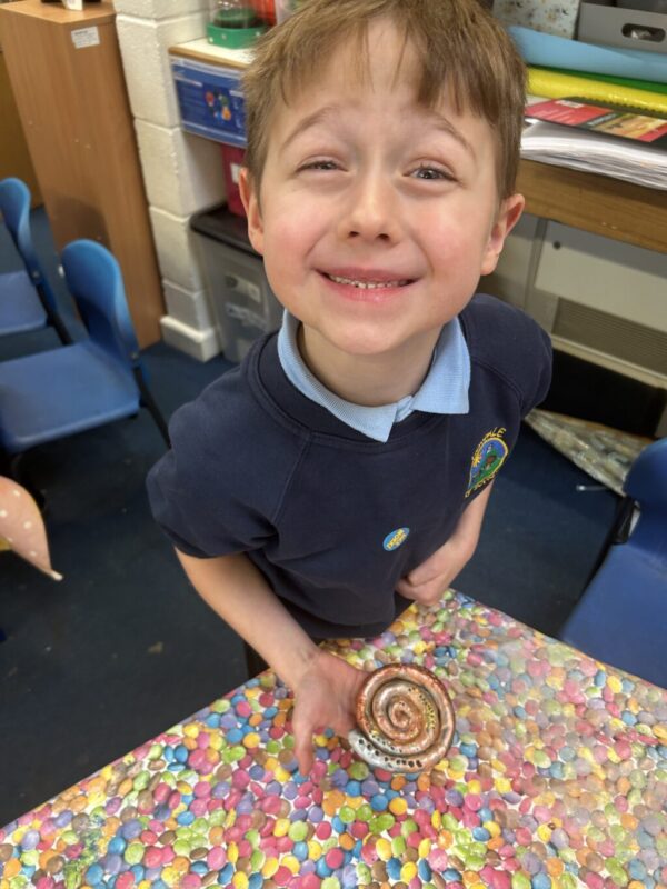 This week, we have made snail sculptures with clay and have painted them too – they look amazing and we can’t wait to bring them home to show you :)