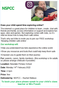 We are really keen to support in the battle to keep children safe online. We have very many systems in school which mean we have a tight grip on what children can access. Unfortunately, this pandemic has meant that children have been couped up way more than usual over the last 2 years and for many this has meant significantly more time spent on devices. As a parent of teenagers I know how hard it is to keep control of what children do and what they access. We are aware that a significant number of our children have access to apps that have a much older age limit on them. We know from research that the age limits are very much set inline with the maturity levels of children. Miss Newport has arranged some really worthwhile training and support for parents which will be delivered by the NSPCC. We do hope you can attend.