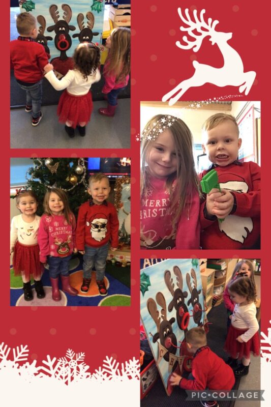 Our Christmas party 🎉 was full of fun. We started the morning off with a snow ball fight in the hall, great fun without getting wet or cold! Then we returned back to nursery for the party games, stick the nose on the snow man, hook a hoop on Rudolphs nose, musical statue’s and then being a little silly with the photo props, has to be done ! The children have filled their tummies with party food, sorry if they don’t eat all their tea tonight.