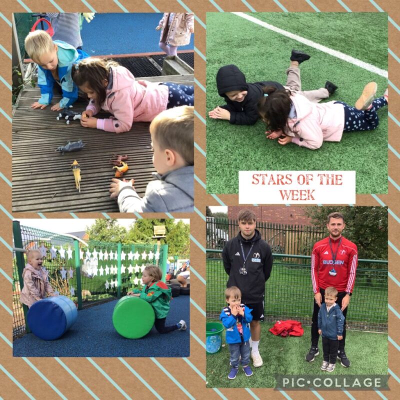 Exploring the world 🍂🍁 around them our tuff tray was set up as a scene from the Zog book with natural resources from outside and handmade props. This allowed the children to touch, smell and bring their own ideas to the tray in their child initiated time.