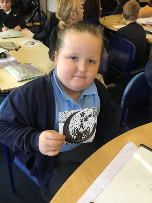 As part of our life learning unit on diversity, we have been reading about a Muslim child named Omar who celebrates Ramadan. We used this as an opportunity to research the festival. We reflected on making positive changes whilst creating Ramadan art.