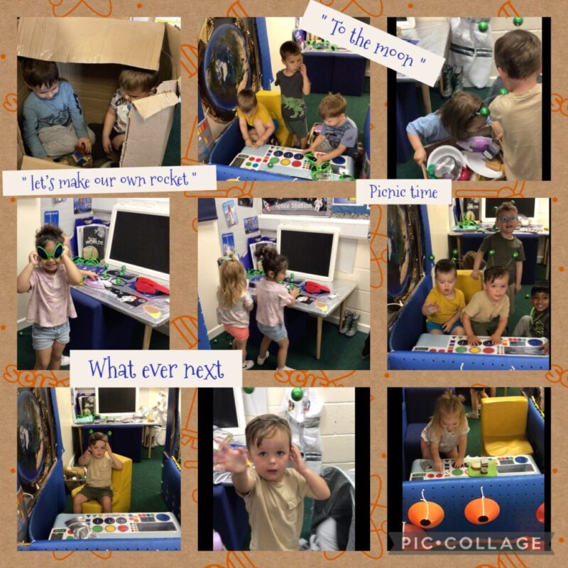 The children have been very curious and interested to explore the new and familiar experiences around them. From the role play area ‘ space rocket’ theme book ‘ what ever next ‘ to the physical and large construction outside.