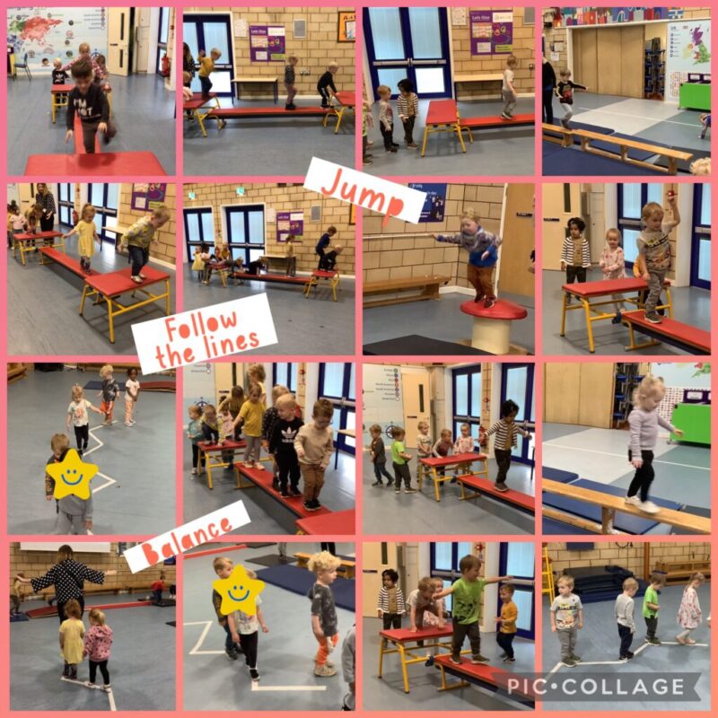 Indoor PE we used a lot of balance beams in different ways to get the children moving around using their bodies in different ways.