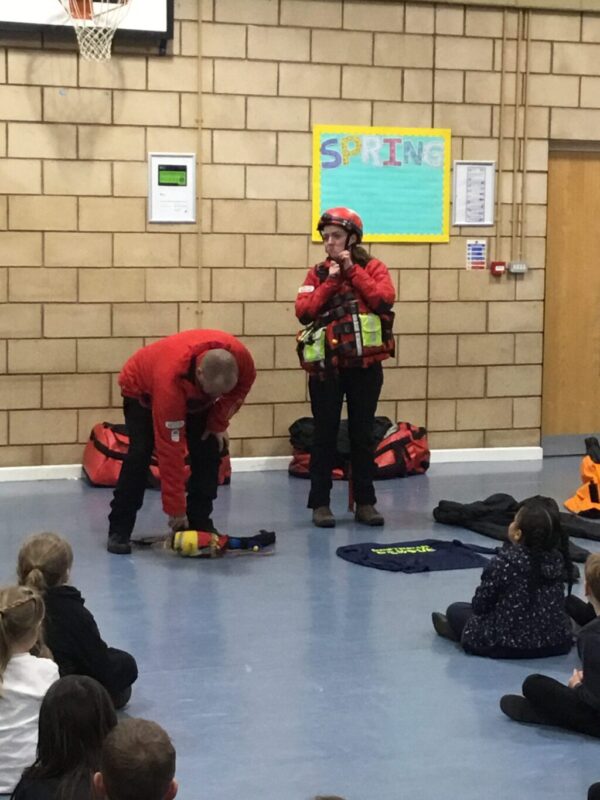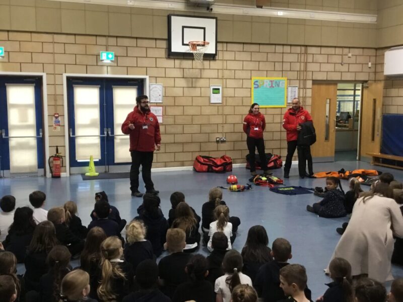Water Safety Assembly This afternoon we learnt how to help others in danger in water by raising the alarm, deploying a “life rope” and most importantly NEVER GOING INTO THE WATER TO HELP. We also learnt how to form a starfish position so we can “float to live.”